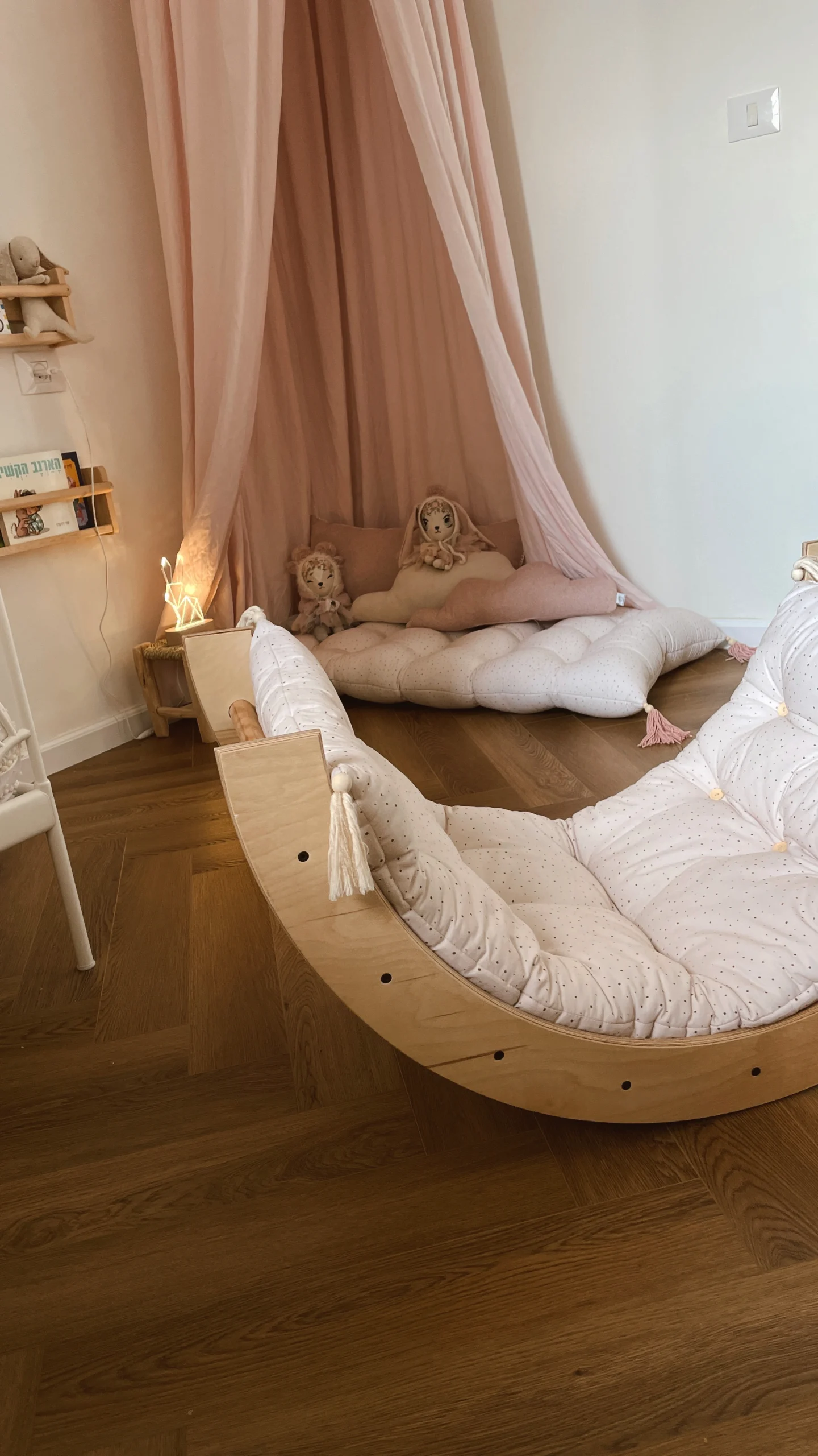 כורסת נדנדה ייחודית בהשראת הגישה המונטסורית, בצורת קשת פעילות המשמשת גם כסולם טיפוס עדין.