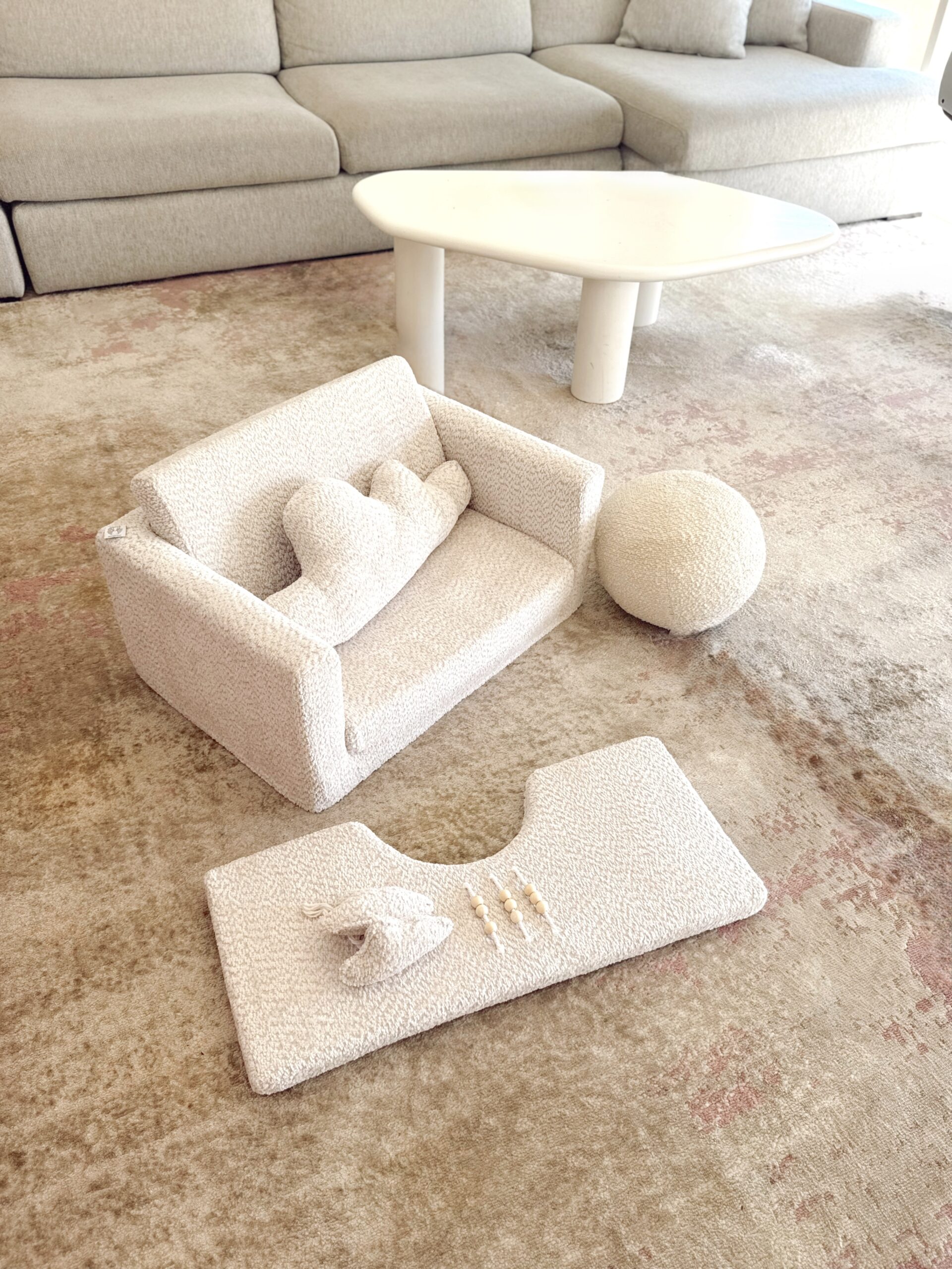 ספה מודולרית לילדים, נפתחת לישיבה או שכיבה, בנויה במבנה סלון אמיתי עם חיזוקי עץ פנימיים – ליציבות, בטיחות ועמידות גבוהה לאורך שנים. כוללת כרית ענן ומגש שירות תואם