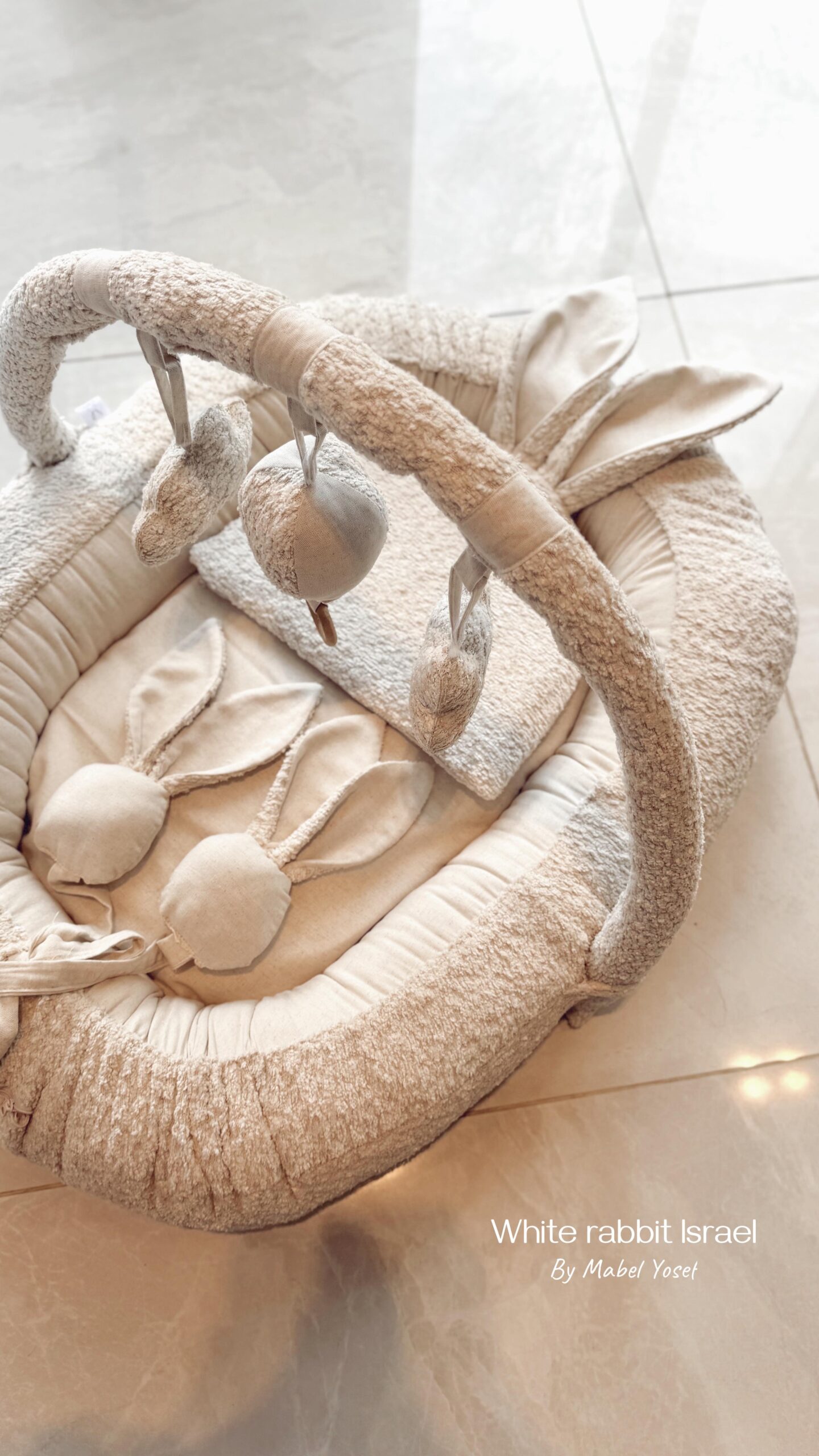 קשת פעילות רכה ומעוצבת, נתפרת בהתאמה לבייבינסט – עם צעצועים מרשרשים ומצפצפים שמעודדים מגע, ריכוז וגילוי.